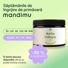 • Colagen premium cu acid hialuronic și vitaminele C și E (aromă de mango)
